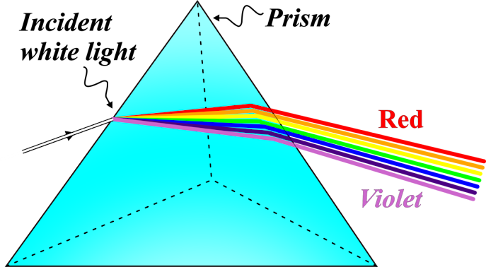 into seven colours (VIBGYOR – Violet, Indigo, Blue, Green, Yellow, Orange, Red)